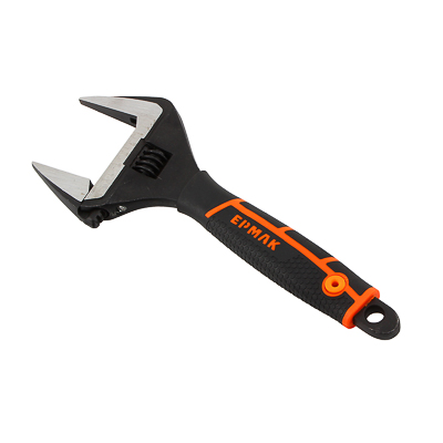 Разводной ключ ЕРМАК с удлиненными тонкими губками 300 мм применяется для монтажа и демонтажа крепежа в процессе сантехнических и других монтажно-ремонтных работ и способен заменить целый набор гаечных ключей. Снабжен мерной шкалой для удобства регулировки степени открытия. Тонкие губки позволяют работать с мелкими деталями, а также облегчают работу в ограниченном пространстве. Высокопрочная сталь не деформируется с течением времени. Прорезиненная рукоять с отверстием для подвеса не натирает ладонь и обеспечивает надежный хват.
