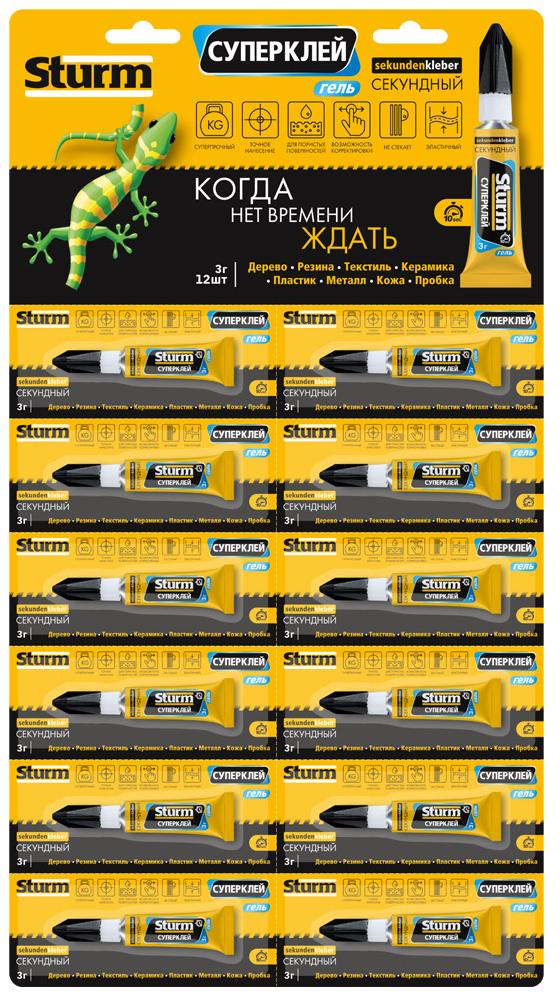 Суперклей-гель «STURM» отрывной 3г (12шт/уп)