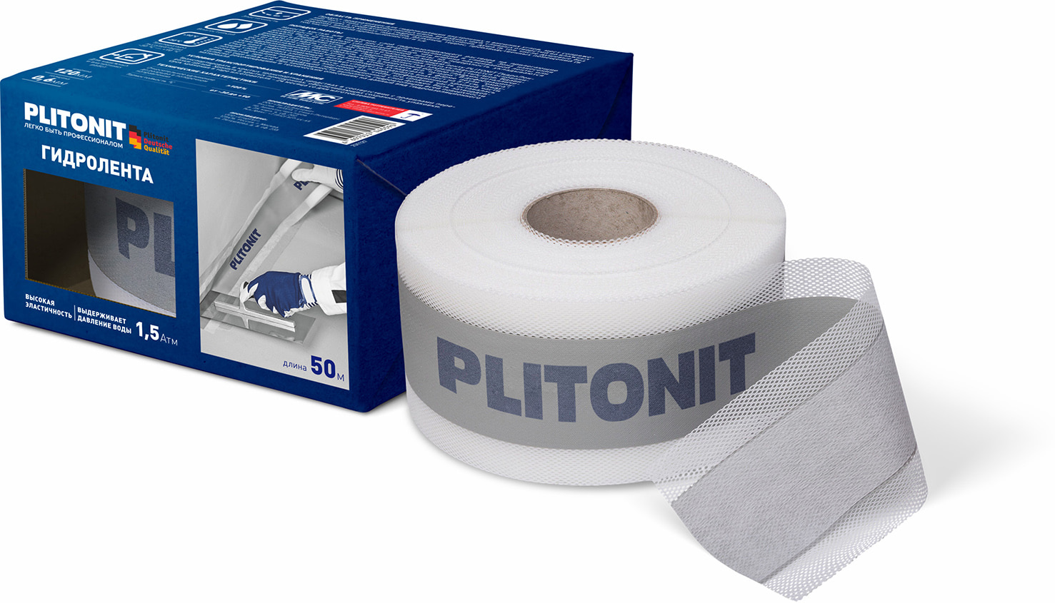 PLITONIT ГидроЛента применяется в системе с полимерной гидроизоляцией PLITONIT ГидроЭласт. Гидроизоляционная мастика PLITONIT ГидроЭласт подходит для душевых, в том числе без поддона, ванных комнат и других влажных помещений, может применяться для гидроизоляции балкона под дальнейшую облицовку плиткой. Для гидроизоляции бассейнов, колодцев, подвалов, резервуаров с водой, других объектов, подвергающихся воздействию повышенного давления воды, используйте эластичную двухкомпонентную гидроизоляцию ПЛИТОНИТ ГидроЭласт 2К.